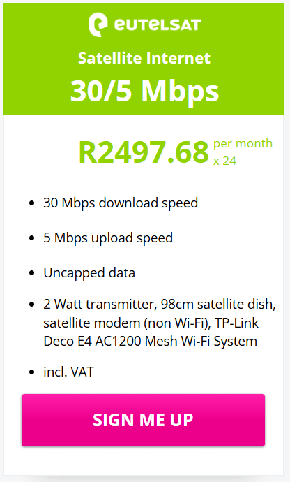 Eutelsat is a high-speed internet access service delivered via Satellite by Vox.